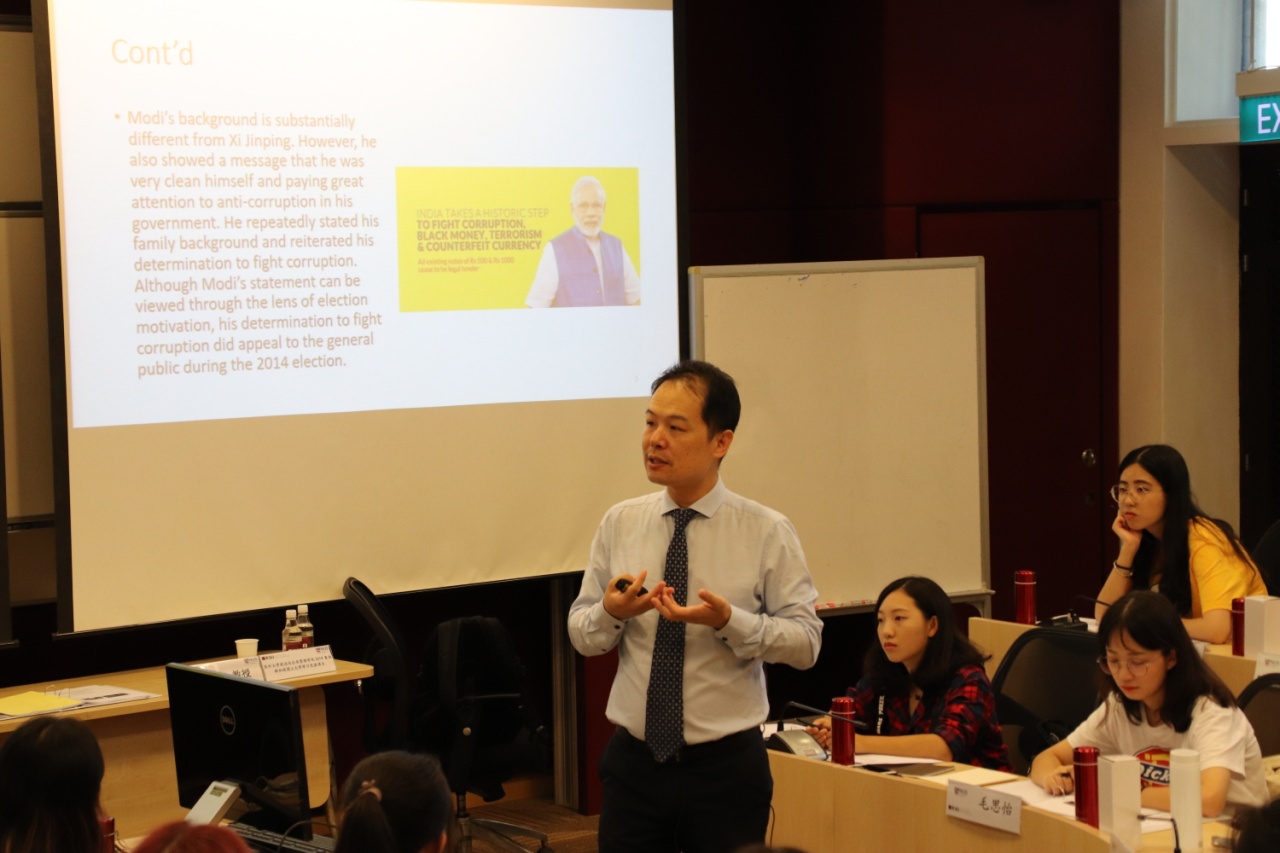 吴木銮教授为同学们讲解“如何整治贪污腐败”这一问题。吴教授开宗明义,列出清晰明确的数字展示中国与印度两国的反腐历程,更分析了基于中国“老虎苍蝇一起打”和印度“废钞令”政策背后的国家治理理念。同时,老师也鼓励同学们多维度思考如何来真正落实反腐廉政的建议措施。课程的最后,吴教授特意留下时间与同学们交流互动,答疑解惑。