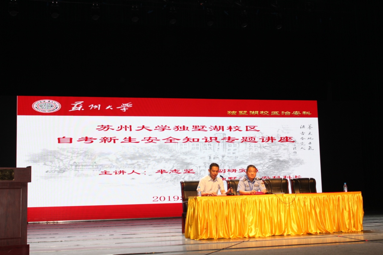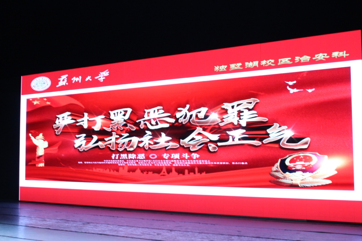 开学典礼结束后,保卫处独墅湖校区治安科芈志坚科长,结合“严打黑恶犯罪,弘扬社会正气”,对同学们作了安全知识专题讲座,让同学们牢记:安全不放松,时刻敲警钟。