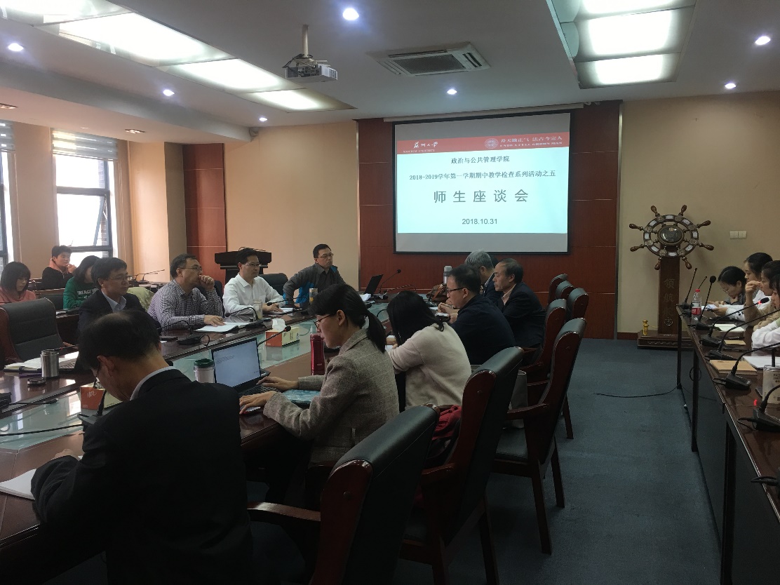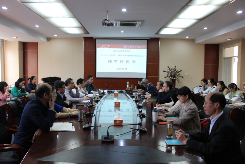 为全面了解和掌握新学期开学以来学院本科教学整体运行情况,及时发现和解决教学过程中存在的问题,进一步提升教学质量和加强本科生学风建设,学院于10月31日下午在6317院会议室召开了2018-2019学年第一学期期中教学检查师生座谈会。学院院长陈进华,院党委书记邢光晟,副书记、副院长尹婷婷,各系科负责人及部分教师代表,院本科生教务办以及各班学生代表参加了座谈会。会议由黄建洪副院长主持。