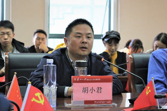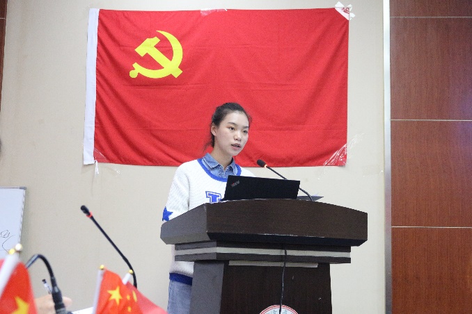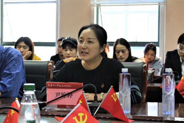 尹婷婷老师对各位教师党员、学生党员的到来表示欢迎与感谢。致辞中,她提出希望同学们能够通过此次的学习交流,不忘奋斗初心,牢记自身使命,勇担时代责任,书写伟大祖国的未来华章。