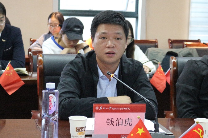 10月16日周三下午,“奋斗新征程,筑起永不流失的精神之钙”——一场聚焦国庆庆典的师生座谈会在政治与公共管理学院6317会议室顺利举行。本次活动由苏州大学中国特色社会主义理论体系研究会、苏州大学政治与公共管理学院研究生党总支共同举办。出席本次座谈会的嘉宾有原政治系党总支书记、校关工委秘书长李家钧老师、张家港市城乡与住房建设局钱伯虎、太仓港经济技术开发区管委会安环局何小刚。院党委副书记、副院长尹婷婷老师、苏州大学中国特色社会主义理论体系研究会专业指导老师胡小君老师、苏州大学政治与公共管理学院学生办公室主任、本科生党总支书记甄勇老师,以及学院学生党员代表共同参加了活动。本次座谈会由19级地方政府与社会管理专业硕士研究生刘涵怡主持。