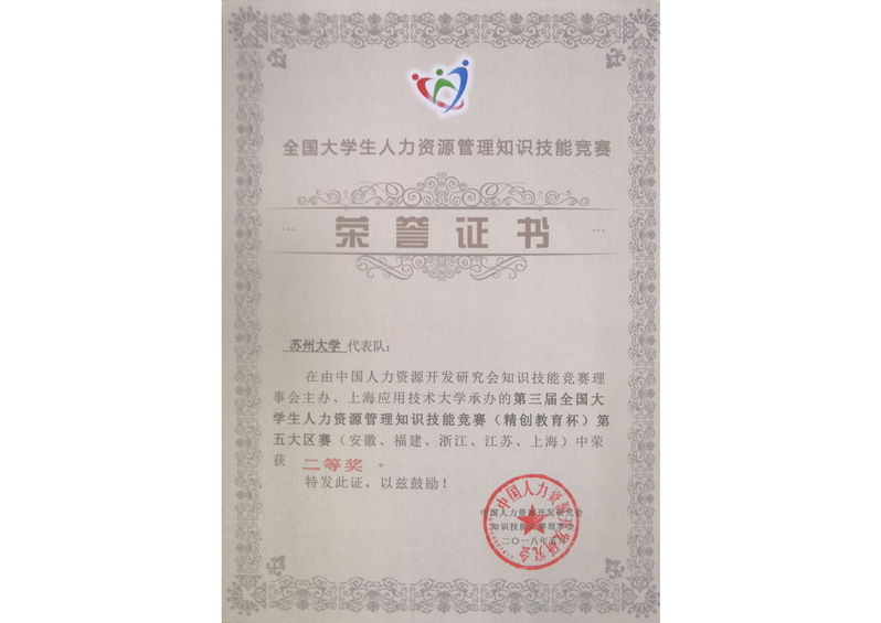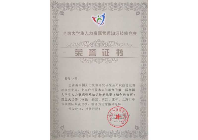 5月19日-20日,在我院管理科学系熊伟老师带领下,我院2015级人力资源管理专业的李文锐、柳静、夏楚凡、张逸陶四人组成的代表队和来自安徽、福建、浙江、江苏、上海五个省的51支本科生代表队共同参加了由中国人力资源开发研究会知识竞赛理事会举办、上海应用技术大学承办的第三届全国大学生人力资源管理知识技能竞赛,我院代表队经过艰苦的培训和现场八小时角逐,最终以优异的成绩获得第五大区赛二等奖。