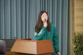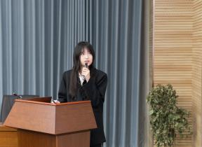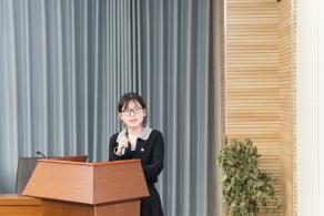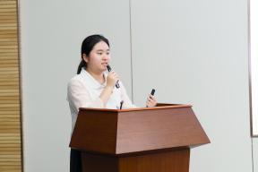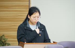 团课展示中,16位团支部书记围绕青年挺膺担当,聚焦党史和共青团发展史、团务工作和时事热点等内容,依次进行团课展示。从黄旭华、黄文秀等为广大青年树立榜样的青年模范,到伟大建党精神、长征精神等中国共产党人的红色血脉;从对党的二十大报告、习近平总书记对青年寄语、新质生产力的生动阐释,再到“惠寒”精神、身边榜样的点滴故事,团支部书记在仰望星空的同时脚踏实地,将理论基础化为青年实践,既展现了百年来共青团员们听党话、跟党走的青春风貌,也充分展现了苏大青年们的拳拳爱国心和浓浓责任感。