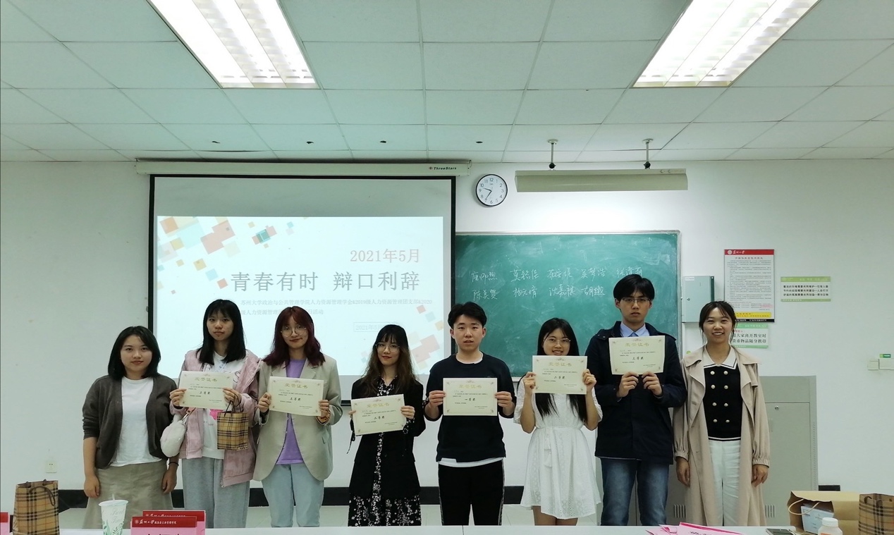 5月20日晚,由苏州大学政治与公共管理学院团委主办、人力资源管理学会、19级和20级人力资源管理团支部承办的“青春有时 辩口利辞”无领导小组讨论大赛在606教学楼6107教室成功举办。出席本次活动的评委老师有管科系副教授、硕士生导师章小波老师,院学工办副主任、18级本科生辅导员张凯丽老师和20级本科生辅导员薛佳佳老师。