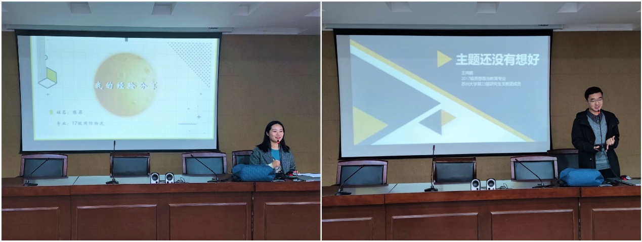 为了给在座的同学们打上一剂“定心剂”,刘丽雯老师还特地邀请了一位成功保研南京理工大学的学生,通过现场播放录制视频的方式分享了他的成长之路。同样,我校17级思想与政治教育的王祎鹏同学,和17级国际物流专业的陈菲同学也现身讲座现场,向学弟学妹们分享了自己的保研经历,并向在座的学弟学妹们送上了最真挚的祝福。