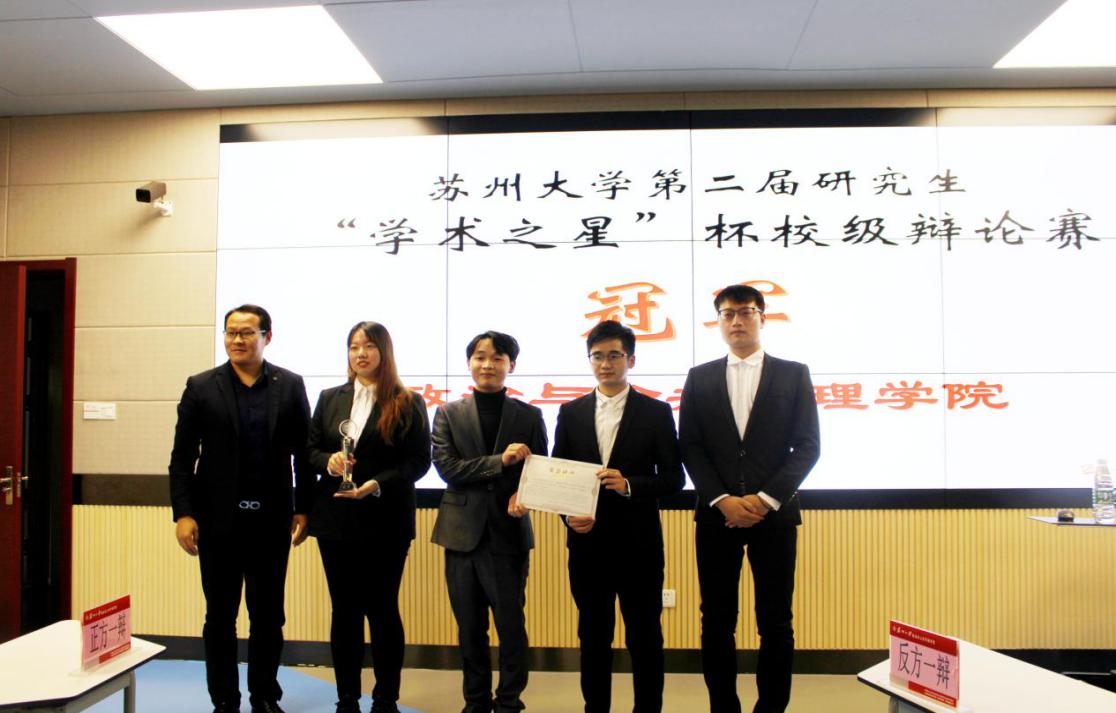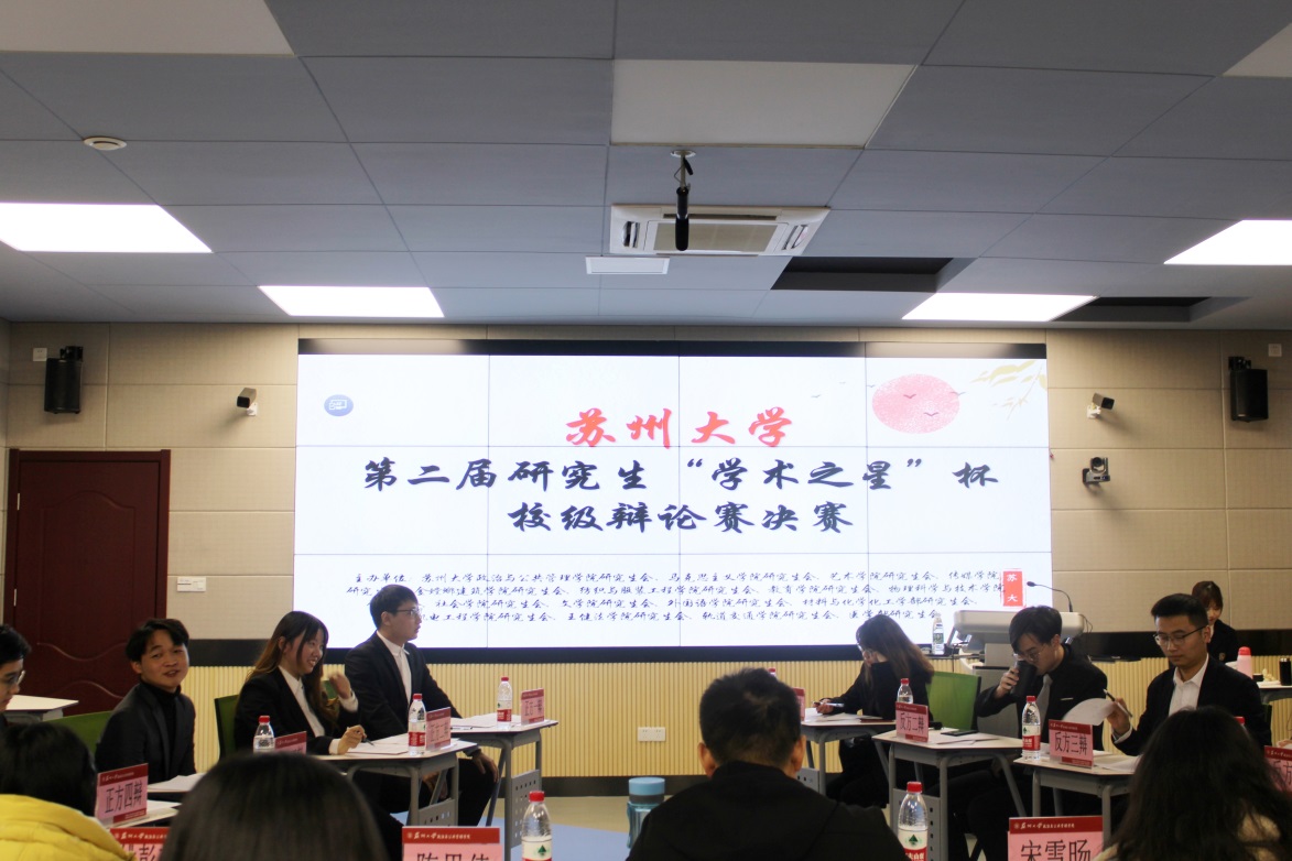 苏州大学第二届研究生“学术之星”杯辩论赛决赛于2020年12月20日下午2:00,在独墅湖校区一期606幢6402会议室举行。经过初赛,复赛,半决赛的层层选拔,入围本次决赛的四强辩论队分别来自政治与公共管理学院、王健法学院、外国语学院以及教育学院,其中,政治与公共管理学院和王健法学院将在总决赛中争夺冠亚军。
