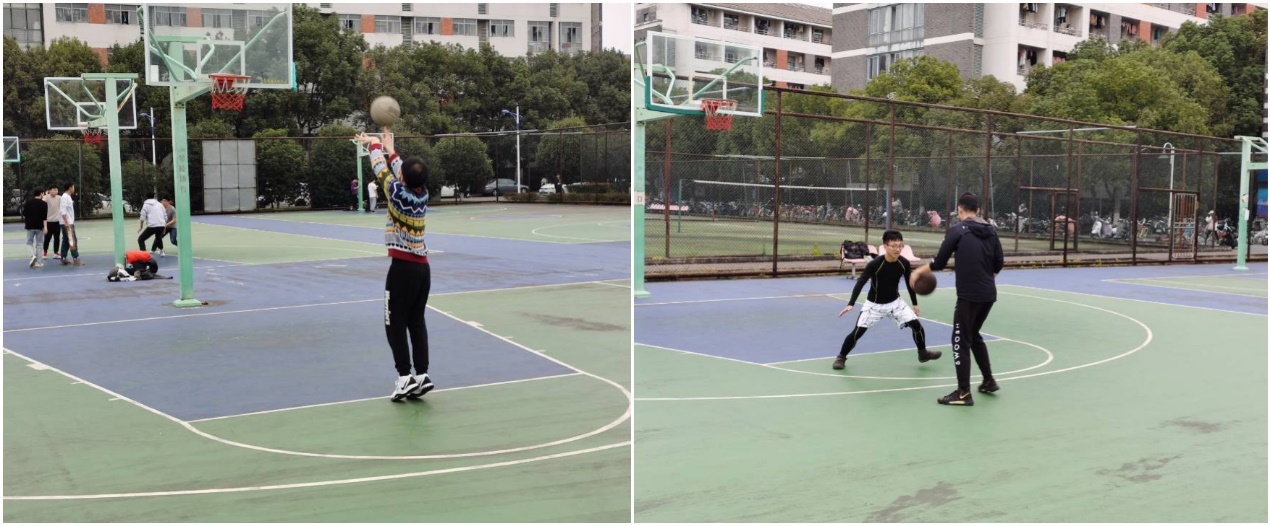 此次活动以男女生分组的方式进行。男生们于东侧篮球场以自由组队的形式进行5对5友谊对抗赛,大家都积极响应,投入运动,欢呼、呐喊声让友谊赛气氛不断升温,让在场所有的同学都感受到了篮球的乐趣和活力,更是吸引了不少路人的目光。女生则在西侧篮球场开展了3对3的篮球赛,所有女生都投入其中,斗争激烈,战术合理;不进球也不气馁,捡起球再次出手,展现出了百折不挠的运动精神,洋溢着昂扬的拼搏精神。