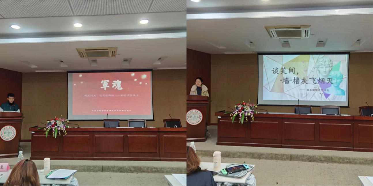 展示环节开始后,主持人依照提前抽签决定的顺序依次请参赛选手上台进行PPT作品的介绍和展示。女排精神是对中国女子排球队顽强战斗、勇敢拼搏精神的总概括,“从《夺冠》看女排精神”这一作品通过诠释电影《夺冠》中所体现的女排精神,展现中国女排在世界排球赛中五次蝉联世界冠军,为国争光的光辉战绩,完美演绎了女排精神,给予了在场的同学们巨大的鼓舞;参赛者以“成都地铁站:成都把秋天搬进了地铁站”这一主题的PPT,向同学们展示了成都地铁站里充满秋天气息的照片,介绍了成都的文化底蕴,让观众们对成都文化有了更加深入的了解;“娱乐圈地震型塌房”主题PPT作者则以调侃的口吻介绍了娱乐圈里最近发生的“塌房”事件,表达了自己的看法与理解;“铁血信仰:解放军人们坚持在西藏海拔5400米的边防线上巡逻”、“家国威严,大陆坚持台湾主权领土不可分割”和“5G时代来临,全球信息化迈上新台阶”主题PPT分别赞颂了解放军们保卫祖国国土的崇高精神、强调了台湾是中国不可分割的一部分,向同学们介绍了“5G”的重要意义。