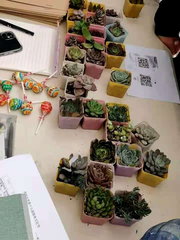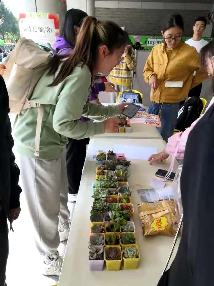 在活动过程中,宣传部的工作人员向同学们介绍多肉的诸多作用及种植要点,帮助同学们更科学地养植多肉。与此同时,现场的工作人员紧张忙碌地进行着兑换工作,检评部和女生部的工作人员向参加活动的同学们宣讲了活动规则:一个月后将由相关负责人进入宿舍逐一检查,若多肉长势良好,形态美观,领取者可获得精美小礼物一份。同学们在认真挑选好自己心怡的多肉并留下基本信息后,还主动与领取到的多肉拍照留念。待最后一盆绿植兑换结束,本次活动圆满结束。