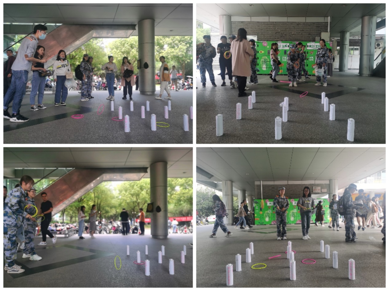 “圈圈拒绝毒品”也同样如此,同学们竭力将手中的5个圈圈投向不远处的瓶子。通过这种游戏方式,同学们能够认识到毒品的种类之多,在游戏中进一步了解到毒品的危害,强化自身的禁毒意识。