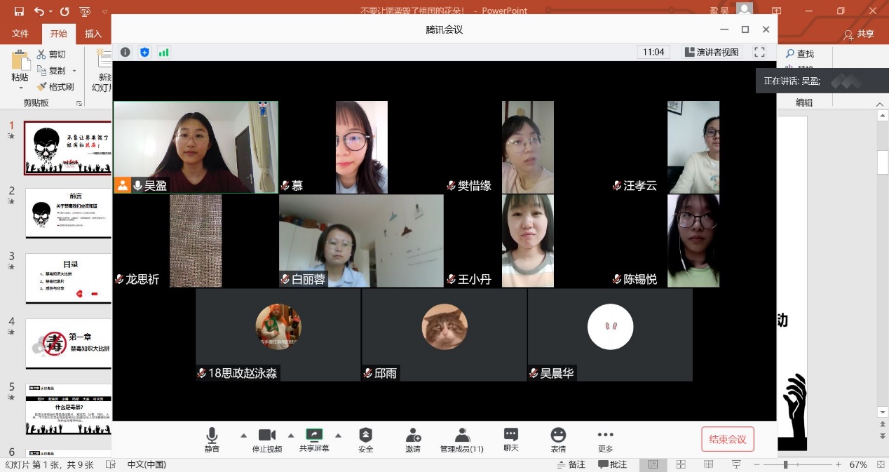 6月20日晚上19时,2018级思想政治教育团支部紧跟星火禁毒社“禁毒先锋聚星火,青春追梦不一Young”项目的步伐,在腾讯会议举办“不要让罂粟毁了祖国的花朵!”团日活动。18级思想政治教育专业全体学生参与了本次活动。