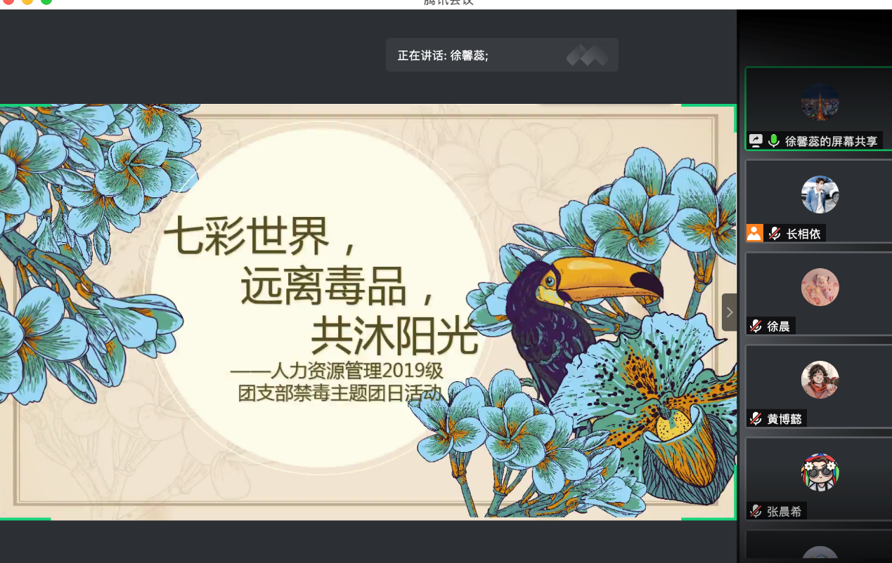 本次线上团日活动让同学们在欣赏祖国大好河山的同时,也着重介绍了毒品的危害以及禁毒的意义,以期提高同学们对毒品的警惕、保留住城市良好的精气神,利于社会风气好转,构建和谐社会。让同学们深刻懂得吸毒的危害从而以自身的实际行动远离毒品,珍爱生命。