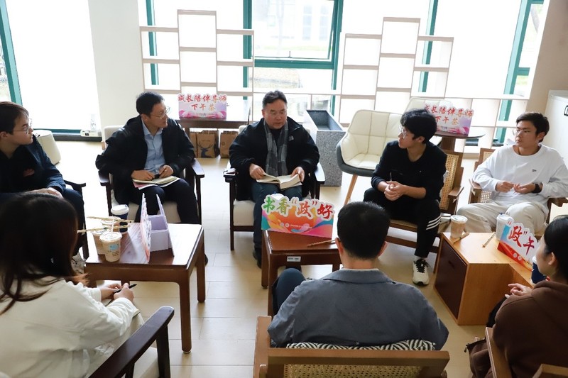 “专业课上要完成读书报告,不知该选什么书来读,怎么读。”一名大一学生问。书香与茶香的氤氲中,学院的“青春会客厅”正在开展一场读书沙龙。院长陈忠作为成长陪伴导师,翻开自己正在读的历史学家伊恩·莫里斯的著作《西方将主宰多久》,与同学们分享读书体会,“试着从经典著作读起,放平心态,沉浸思考”。读书之余,话题展开,从专业选择到毕业去向,从生活趣事到同学关系,不知不觉过去2个小时,大家意犹未尽。