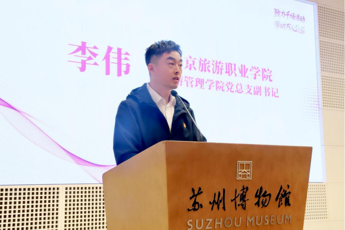 活动中,苏州大学政治与公共管理学院副书记李恩秀发表讲话,她指出,学院拥有老挝大湄公河次区域国家研究中心、苏南政府治理与社会治理现代化研究基地、社会组织与社会治理研究院、地方政府与社会管理研究中心等研究机构,培育了一代代如苏大“青茶支教”公益团队般兼具家国情怀、国际视野、人文素养和管理智慧的青年英才。她表示,希望多方继续共同以“高校+博物馆”为纽带,搭建公益传播桥梁、带动爱心家庭结对、助力乡村教育振兴;继续共同支持高校青年以“旅游兴农”类创业为抓手,研发更多“苏大+苏博”元素的文创作品与公益活动等,助力创业团队自身发展的同时,为项目的自我造血与可持续发展贡献力量。