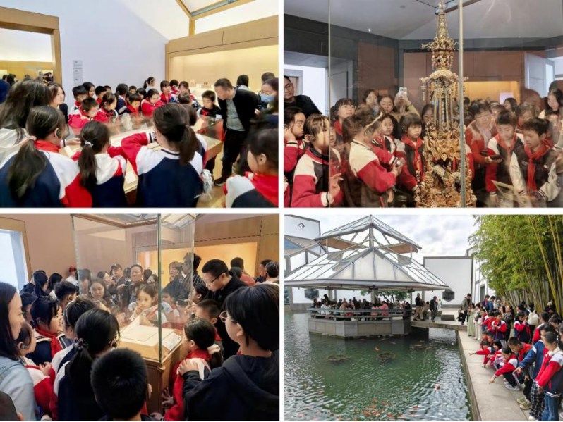 开营仪式后,兴化师生与爱心结对家庭等在我院青茶支教团队和兄弟高校志愿者、苏博讲解员的引导下,共同在苏州博物馆本馆参观学习。下午,江苏高校“旅游兴农”类创业团队组织兴化师生与爱心结对家庭等来到苏州博物馆西馆参观学习,千垛中心校的孩子们还在“探索体验馆”开展了“探苏小大人”活动,在游戏互动中感受苏州历史与非遗文化的独特魅力。