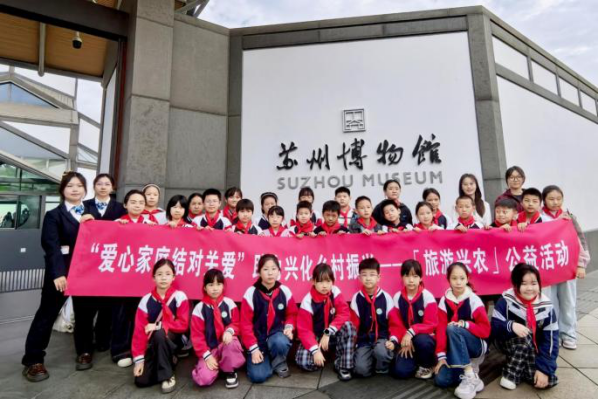 10月19日上午,“爱心家庭结对关爱”助力兴化乡村振兴——「旅游兴农」公益活动开营仪式在苏州博物馆成功举办。活动由我院青茶支教团队联合多所兄弟高校团队精心筹划,由江苏省同读好书共芸窗研究院青年发展部部长周鑫主持。组织兴化市千垛中心校36名师生、苏州地区18名爱心结对家庭代表、高校创业团队骨干等共同走进苏州博物馆,以“高校+博物馆”为纽带,搭建公益传播桥梁、开展公益传播活动、助力江苏乡村振兴。学院党委副书记、副院长李恩秀出席活动并讲话,全球公益传播研究中心秘书长、江苏省妇儿基金会副理事长王华、苏州博物馆副馆长、研究馆员李喆、南京旅游职业学院旅游管理学院党总支副书记李伟、学工党支部书记王楠、江苏省委驻兴化市乡村振兴工作队纪师博士、江苏省妇儿基金会·爱心家庭结对关爱公益基金联合创始人陈宣霖、学院学工办主任董筱文、江苏省妇儿慈善爱心传递大使、我院青茶支教团队负责人周雯雯、江苏省妇儿慈善爱心传递大使、苏大“青春同伴”团队负责人陈雨帆、团队成员杨乐等共同参加活动。