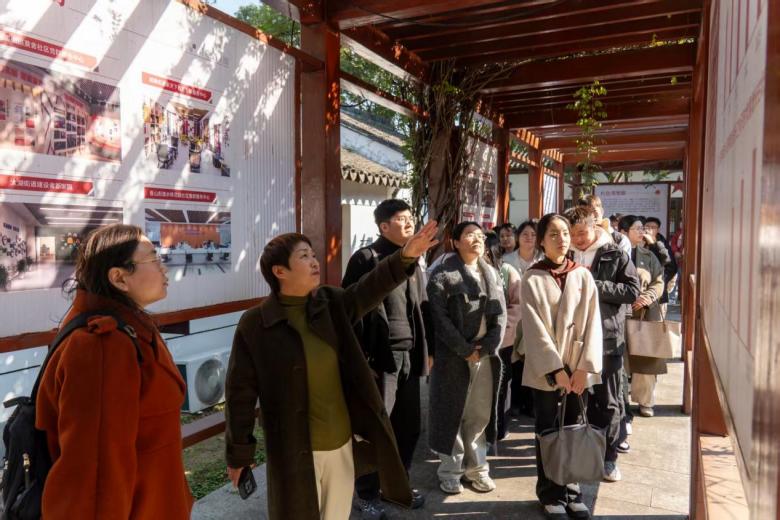 “原来课本里的‘三个集中、三个置换、四大改革’,在苏州都是一件件正在发生的事。”早上,同学们走进苏州乡村振兴学堂,在学堂发展中心副主任叶燕的讲解和带领下沿着“海棠花红”环太湖党建长廊和红色步道一路参观。沙盘模型铺展开城乡空间格局,数据展板滚动着产业升级曲线,影像资料记录着乡村面貌蝶变——理论里的关键词,在一幅幅图景中“活”了起来。
