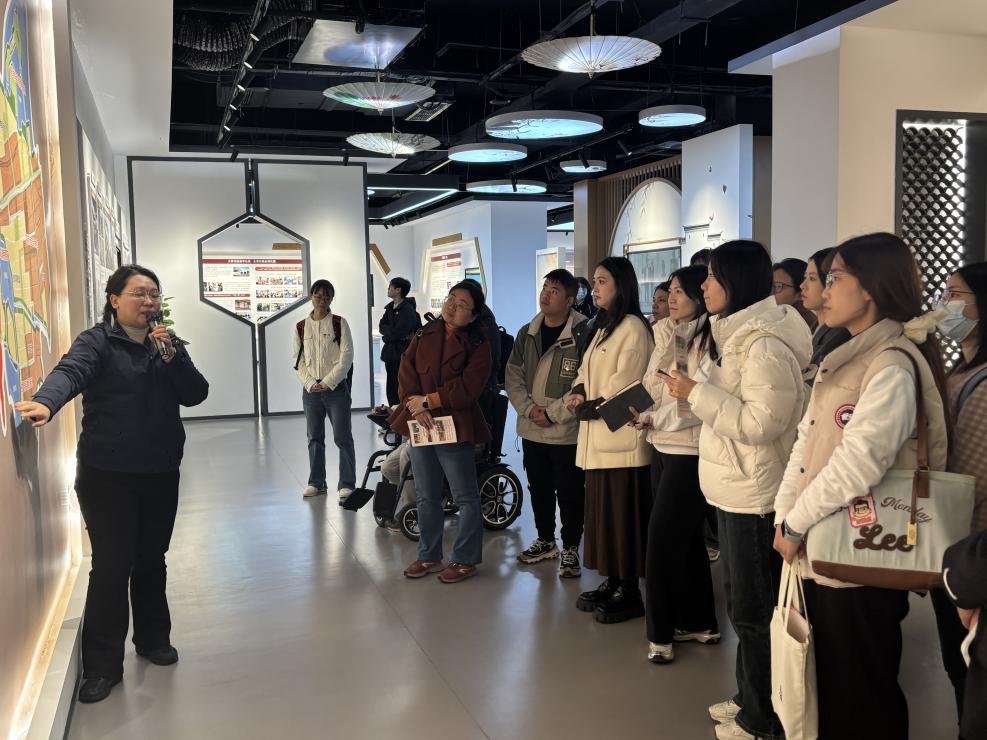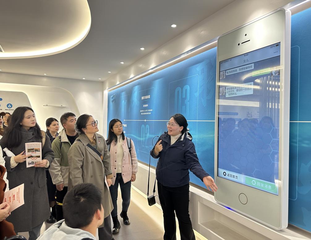 活动的开始,师生党员在讲解员的引导下,依次参观了一楼教学展示区,以及“安葑宁家、葑水清莲、诚葑破诈”三个主题展示馆。一楼的教学展示区通过26个鲜活生动的民生实践案例,让党员们系统体会“党建引领、多元共治”理念在城市更新、城市管理、民生服务、综合治理、集体经济、党的建设等领域的落地成果,深刻感受到“娄葑经验”的实践价值。在三楼的主题展示馆,党员们通过沉浸式互动体验了解了安全、反诈、廉政知识,充分领悟到娄葑街道践行为民宗旨,大力弘扬 “敢为、敢闯、敢干、敢首创”的精神,牢固树立“金杯银杯不如百姓口碑,老百姓说好才是真的好”的标尺,始终保持“真干、实干、苦干、巧干”的作风。
