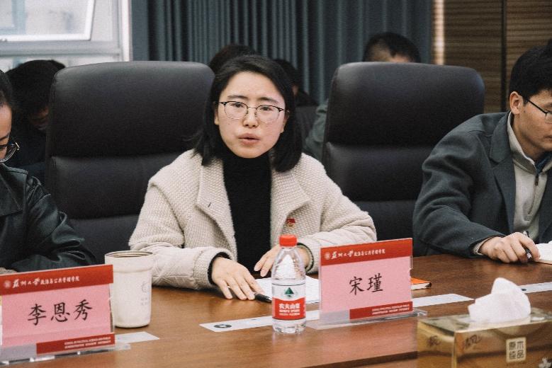 会议第一阶段围绕支部工作总结与意见征集。王一成汇报了哲学系党支部作为全省样板支部以“一体两翼”机制为核心的建设成果;政治学系与公共管理系党支部书记李慧凤、李伟分别围绕党建与“政产学研”协同发展、“校社互动”等方面,分享了党建与业务融合的实践经验;施从美介绍了管科系党支部推进课程思政的特色举措;曾永安总结了行政党支部强化党员理论学习的工作经验;本科生党支部书记董筱文、张凯丽交流了支部品牌建设心得;研究生党总支书记陶卉汇报支部优化拆分情况,各研究生支部负责人简述了当前工作现状与未来规划。汇报结束后,与会人员围绕学院党建发展积极建言,提出挖掘校友资源、统筹安排理论宣讲等有针对性的建议。