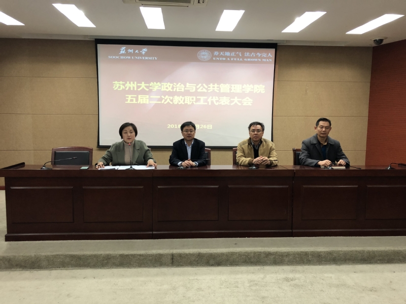 在五届二次教职工代表大会上,陈进华院长做了院长工作报告。2018年在全院教职工的共同努力下,在教学、科研、人才培养、社会服务等各方面都取得了一定成就。教学上,学院坚持“以本为本”,强调“课比天大”,始终抓住立德树人的根本任务不放松,强化专业建设和教学团队建设,实现了行政管理专业入选校一流本科专业、“地方政府与社会治理课程群教学团队”入选校一流本科教学团队。在学科和科研上,举办一系列高水平的学术会议和邀请三十位专家来院讲学,获得国家级项目9项,教育部项目2项等等。在人才培养上,学院始终秉持“人之子女已之子女”的宗旨,定期召开学生工作专题会议倾听意见和建议,多渠道做好奖勤助贷、关心学生的成长与发展,积极培育创新创业意识,开拓学生多维发展路径。