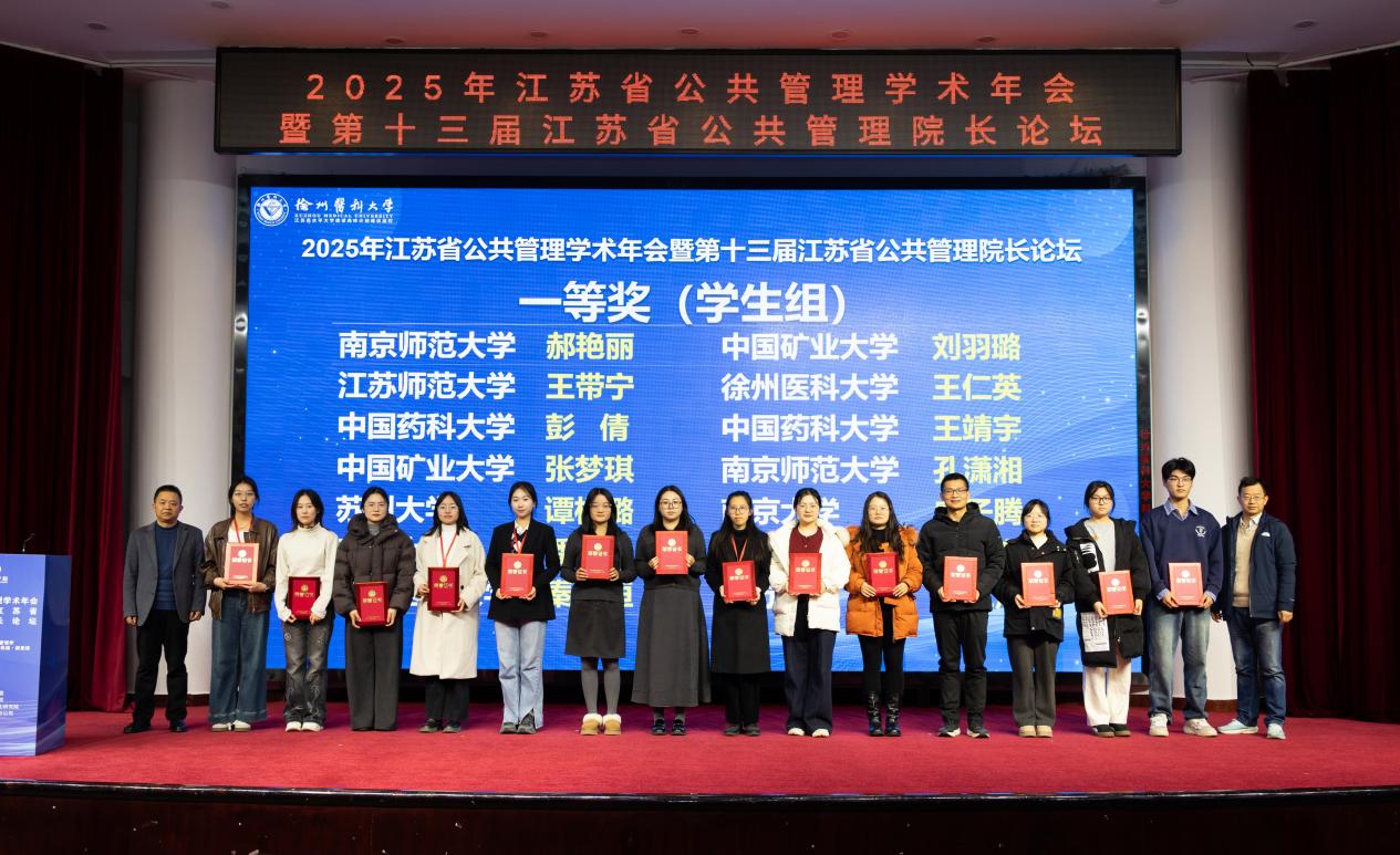 2025年12月13-14日,由江苏省公共管理学科联盟主办,徐州医科大学管理学院、卫生健康中国式现代化研究院共同承办的2025年江苏省公共管理学术年会暨第十三届江苏省公共管理院长论坛在徐州顺利召开。本次年会设有四个平行论坛。我院硕士研究生于英鑫、谭杨璐分别于“基层治理与社区发展实践”、“数字治理与智慧公共服务创新”分论坛作学术报告。在此次会议优秀论文评选中,周义程教授荣获教师组一等奖;硕士研究生于英鑫、谭杨璐荣获学生组一等奖,博士研究生潘孝虎荣获学生组三等奖,表现突出。