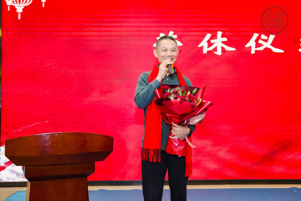 此次活动的赞助方苏州银行申毅彬在致辞中回顾了银校合作历程,对学院给予的支持表示感谢,并期待未来进一步拓展合作领域,实现共赢发展。 荣休仪式上,学院特别向2025年退休教师代表吉文灿老师献花。吉文灿老师深耕讲台37载,为学院的社会服务与管理工作作出重要贡献。他深情回顾执教岁月,言语中满载对学院的深厚情感和对教育事业的不懈热爱。