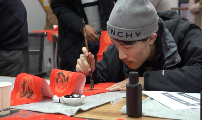 12月25日下午,在苏州大学政治与公共管理学院创意工作室,学院爱好书法的老师同学铺纸研墨,即席挥毫,吸引了一众学生前来观看。手写的春联和福字透着浓浓的墨香,现场欢笑一片、热闹非凡。一撇一捺,书写着他们对老教师无私奉献的感恩;挥笔洒墨,表达着他们对学校蒸蒸日上的祝福;妙笔生花,浸润着他们对祖国越来越好的祝愿。学院党员们相聚于此,以视频录制与直播分享的方式,将祝福传递,为美好接力。