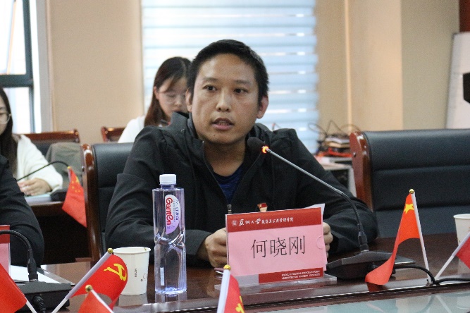 李家钧老师从他自身的经历出发,分享了他从小和党建立的情结,感叹新中国走过的70年光辉历程的来之不易。李老师真切得说自己在家不只一次看阅兵仪式,每一次都充满激动与自豪。此外,李老师以政治与公共管理学院从创始至今的巨大变迁,师生人员数量逐步增长,表达了对新时代的青年学子建设祖国的期望和信心。