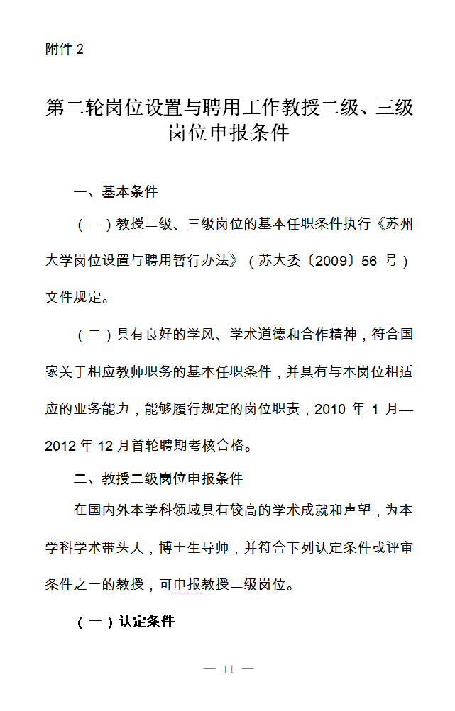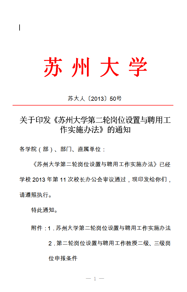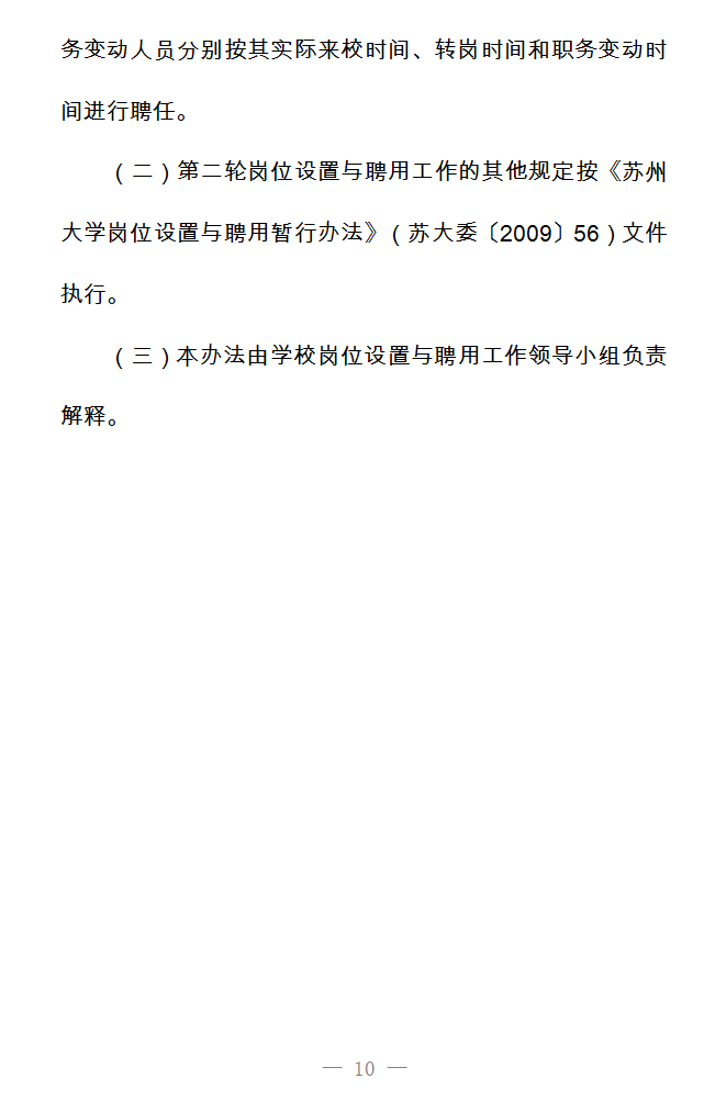 学校关于印发《苏州大学第二轮岗位设置与聘用工作实施办法》的通知