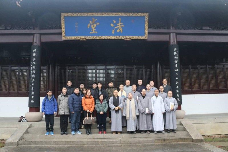 1月11日,哲学系高山、桑明旭、刘雅君、张亮、骆海飞等五位老师与八位研究生至苏州重元寺参加交流参访活动。苏大师生的到来受到常住的热烈欢迎,寒山书院副院长光瑞法师、本觉法师出席上午的交流活动,活动由书院教导长常善法师主持。