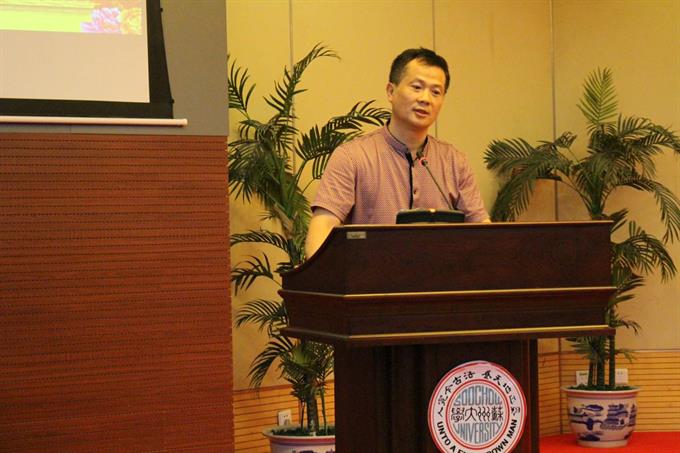 紧接着金太军院长为新生全面系统地介绍了管院的科研成果和学科建设,我院研究生院拥有雄厚的师资——35名正教授,60余名副教授,8位A级教授,金太军院长也是我校唯一一位获得“长江学者”殊荣的教授。同时,管院在苏州大学具有较强的学科优势,例如政治学是江苏省优势学科,哲学属于一级学科,并且,管理学院成立了新型城镇化与社会治理协同创新中心。最后,金院长对新生寄语“多一点责任,多一点贵族气质,多一点理性思考”,并祝新生在未来的日子里学有所成,生活愉快!