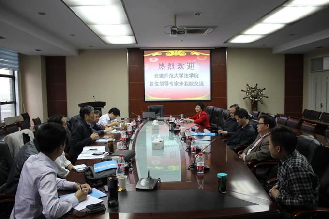 10月19日下午,安徽师范大学法学院李宗楼教授、严宏副院长一行来我院交流,我院金太军院长、潘晓珍副院长和公共管理系相关教授参加了会议。李宗楼教授简要介绍了安徽师范大学法学院的相关情况,并表达了此次交流的目标。金太军院长代表学院欢迎李教授一行的来访。双方就学科建设和课题申报等内容进行了交流。
