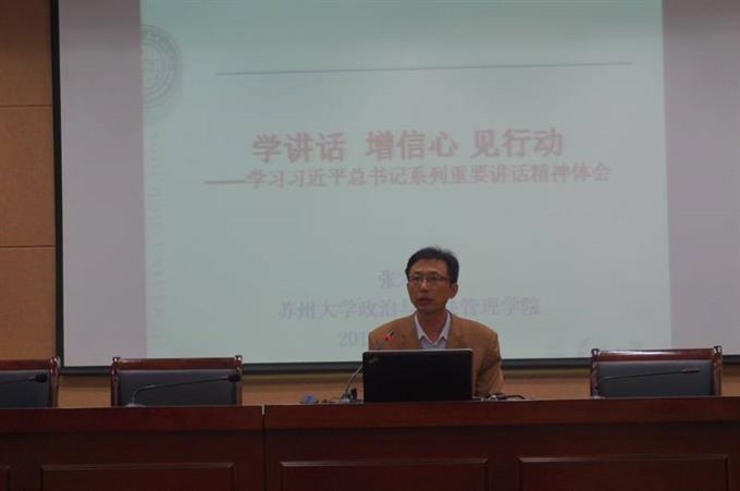 10月16日,政治与公共管理学院张才君书记在606#6403召开了“学讲话、增信心、见行动---学习习近平总书记系列重要讲话精神体会”的思想政治理论讲座。院研究生辅导员单杰和研一各班新生参加了此次讲座。