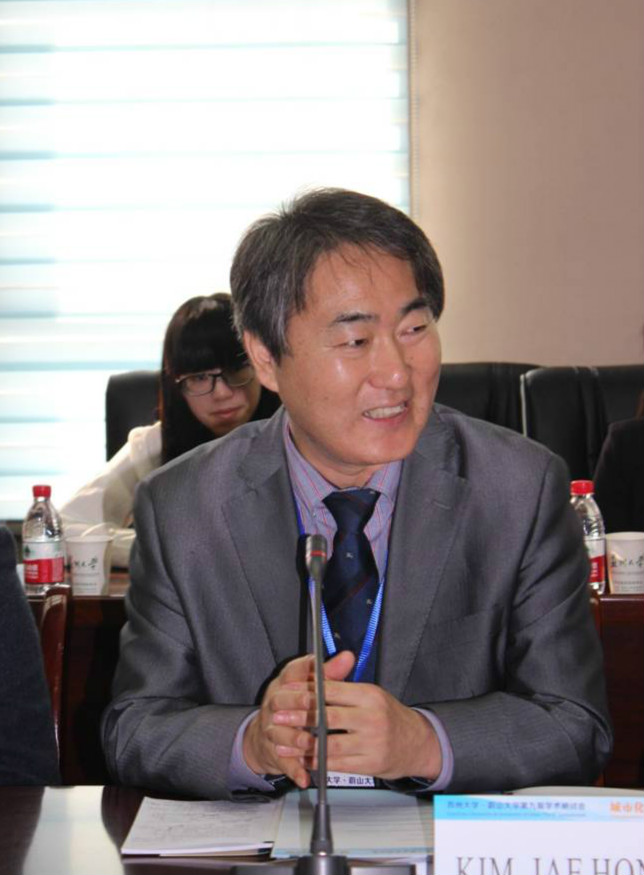 本次研讨会的主题是“城市化与治理”。研讨分为四个单元,双方有14位学者进行了交流。苏州大学政治与公共管理学院乔耀章教授、张劲松教授、龚长宇教授、叶战备教授、叶继红教授、吴莉娅副教授和李慧凤副教授等,围绕新型城镇化,分别探讨了我国城乡二元结构的生成、固化与缓解问题,生态治理过程中政府能力的现代化问题,陌生人社会志愿行动的价值基础问题,新型城镇化发展战略的舆情问题,推进农民集中居住与城乡一体化健康发展的问题,人口城镇化与土地城镇化失调问题,地方分权治理过程中的能力匹配问题。韩方学者谈论的话题比较广泛,涉及大学和工作地选择与韩国高校毕业生工资的空间差异(金宰弘教授),兼职工作对韩国青少年学生的影响(朱殷秀教授),首尔大都市区移民自有住房问题研究(李殷雨教授),韩国商业法案中的有限责任公司(刘荣一),中国经济改革与风险(崔秉哲),外资企业对中国出口贸易的影响(王静),居民向警方举报邻居犯罪的行为研究(康志强)以及职业歧视、暴力伤害与老年保安职业满意度(李昌培)等问题。