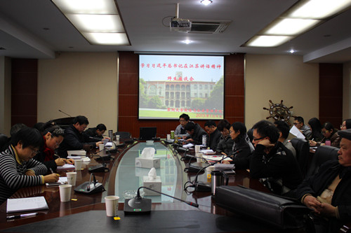 姜建成院长首先阐述了习近平总书记视察江苏时讲话的主要内容,其次针对习近平总书记的讲话,提出了应该怎样把握、学习和贯彻等设想。姜院长指出我们应当准确把握“两个率先”的光荣使命、“建设新江苏”的最新定位、“五个迈上新台阶”的重点任务、“四个全面”的总体框架、“为全国发展探路”的谆谆嘱托,增强先行先试的担当意识,用创新发展的过硬成果为全省全国发展探索路子、多作贡献。