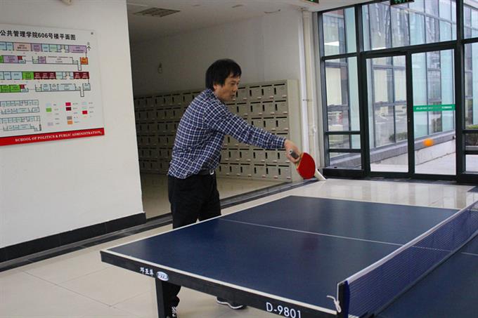 在台球比赛进入胶着状态的时候,欢乐乒乓友谊赛也在如火如荼地进行,乒乓球赛设置男子单打、女子单打两类比赛,以抽签的方式分组。虽然参赛的老师们不是身怀绝技的乒乓高手,但是,他们的表现却一样让大家拍手叫好。场上的老师在友好切磋,场外的观众也在谈论着乒乓球的话题,从乒乓球国球的地位到我国历史上的乒乓外交,继而到我国乒乓健儿的优秀战绩,不一而足。分管男子队的党康林副主席和分管女子队的卢荣辉组委各负其责,一会儿当裁判,一会儿发奖品,忙得不亦乐乎,比赛现场气氛热烈,笑声不断。