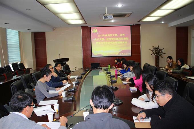 会议首先由谢燕兰老师宣读获得2014年度优秀党支部、优秀共产党员、优秀党支部书记名单,并对上一年度发展党员工作进行系统总结和对本年度开展工作进行部署,主要是加大党支部书记、党支部组织委员的培训力度,纠正发展党员过程中的不足;提升党课培训的通过率和优秀率;凝练支部特色工作法,树立优秀典型;提过党日服务活动覆盖面。曾永安老师根据党员发展工作实际中发现的一些问题进行了梳理。