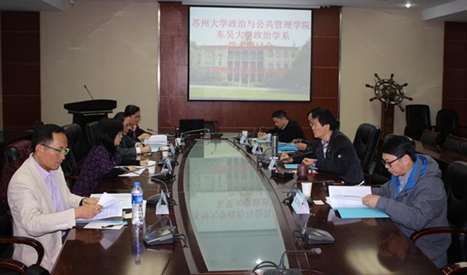 4月3日--4日,政治与公共管理学院与来访的台湾东吴大学政治学系在独墅湖校区6317会议室召开学术研讨会。出席本次研讨会的有学院院长金太军教授、公共管理系主任钮菊生教授和张劲松教授、胡小君副教授、张晨副教授等,台湾东吴大学政治学系主任黄秀端教授和吴文程教授、陈立刚副教授、刘书彬副教授等。本次研讨会分为学术研讨与合作商讨两个阶段。