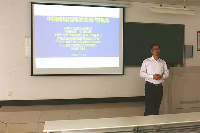 5月13日下午,政治与公共管理学院管理科学系学术讲座“新形势下,苏州工业园区跨境贸易(电商)发展新思路”在606-6113教室举办。讲座由苏州物流中心副总裁包海兵先生主讲,学院副院长钮立新主持。
