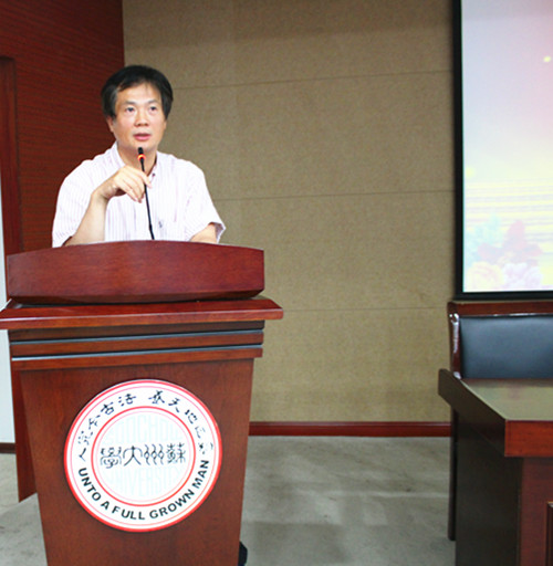 最后,金太军教授作为院长发表讲话,他代表管理学院全体教职工向新加盟管院研究生队伍的同学们表达了热烈欢迎和衷心感谢。金院长首先简单介绍管理学院的发展历程和光辉成就,以及优秀的导师队伍,并重点介绍了江苏师范大学原校长任平教授以及政治学新晋导师朱昌宁教授。随后他向在座研究生提出了个方面的目标:专业素养,学术气质和人文情怀,鼓励大家努力提升专业能力,学会独立及理性思考,培养家国情怀和社会责任感。最后他指出,大家要把握好三年的研究学术生涯,与导师保持密切联系和良好沟通,积极实践自己的梦想与价值,并祝愿大家能收获愉快富足的研究生经历,现场掌声激越。