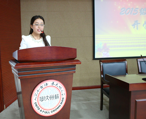 接下来,几位学生代表分别上台发言。2014级行政管理研究生、第十六届管理学院研究生会主席张健荣代表全体老生向新到来的学弟学妹们表示欢迎,并与大家分享了他读研一年来的所思所得。他指出,进入管院即意味着在座各位获得了两种新的身份:研究生和管院人。一方面大家要努力成为一名具有思考能力和独立人格的成熟的研究生,通过认知与行动实现自身价值;另一方面也要培养大气姿态、贵族精神、公共与人文情怀,续写学院20年的光辉成就。随后,2015级行政管理赵静代表全体新生向开学季给予帮助的师长们表达衷心感谢。她强调,路漫漫其修远兮,我将上下而求索,迈入研究生阶段不仅意味着身份的转换,更是一次人生的自我蜕变。作为一名管院的研究生,首先要肩负起承接学术传统,传递知识火炬的使命;其次还要培养成熟的心智,自省自律,坚守人生信仰;此外在座的各位新生还要学有所思、思有所悟、悟有所行、行有所成。2015级MPA研究生丁亚军代表本届150多名MPA研究生表达了进入管理学院的荣幸与喜悦。他指出,尽管大家的工作背景各不相同,但都有着各自的梦想,并在人生美好的年华重返校园,利用周末休闲时间聆听老师的授课。他向大家作出了作为研究生的四个承诺:勤恳做事,踏实做人;严格要求,高质量完成学业任务;真诚待人,与老师、同学及同事和睦相处;学有所用,将所思所学应用于工作实际。