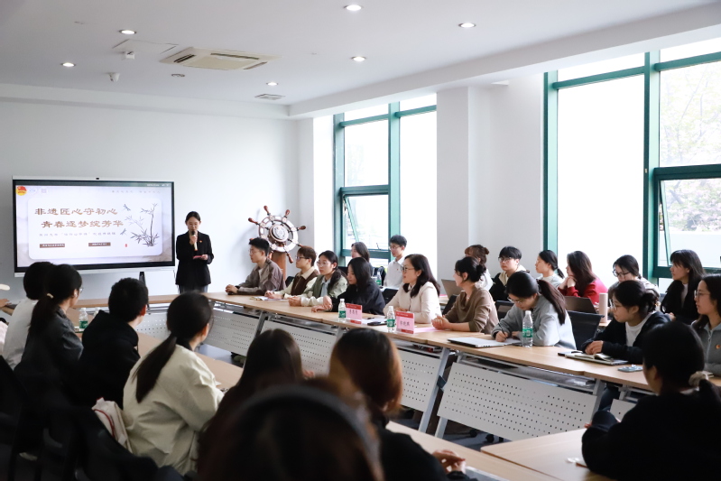 4月15日下午,学院在独墅湖校区607教学楼教工之家举行“非遗匠心守初心,青春筑梦绽芳华”苏州大学“信仰公开课”校级示范课(素养公开课)。青年艺术家、中国工艺美术协会纤维艺术专业委员会会员、青琪发绣(苏州)文化科技有限公司创始人郭晓琪应邀授课。学院党委副书记、副院长李恩秀,团委书记张凯丽,2026年苏州大学“青年马克思主义者培养工程”春季班学员,学院“青年马克思主义者培养工程”学员以及师生代表等参加活动。