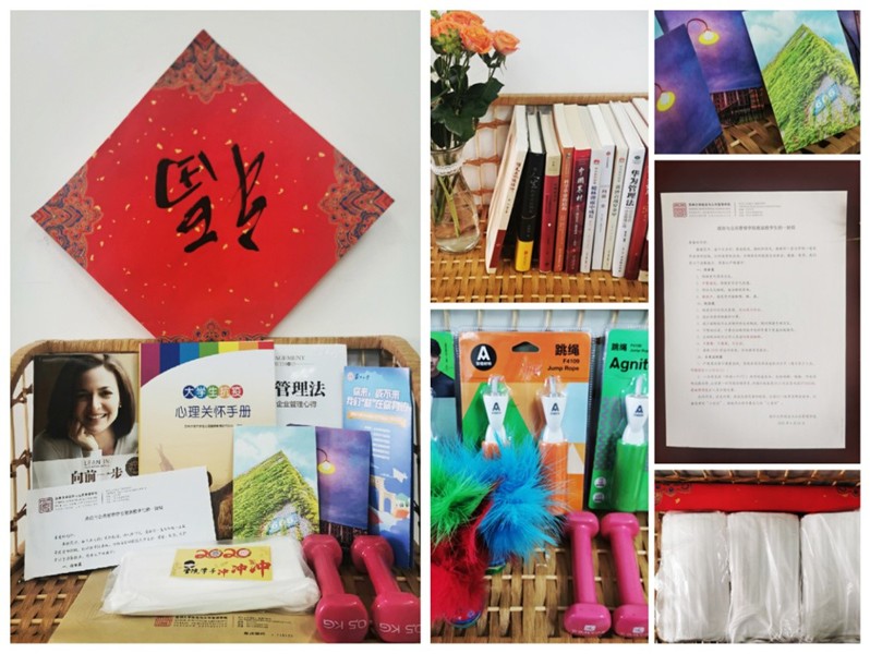 面面俱到,暖心礼包。4月23日刚进校园,学生就收到了“暖心礼包”,里面装着学院的“小心意”。“春暖花开,奋斗正当时;重返校园,扬帆但信风。”致返校学生的一封信从“宿舍篇”“校园篇”“自我监测篇”逐条列出温馨提示;一本本书籍、一张张明信片,希冀学生在静读、沉潜中珍惜大学的“小时光”,拥抱自己的“小美好”;一包防护口罩、一根跳绳,鼓励学生在做好自身防护的同时,勤锻炼,强体魄。