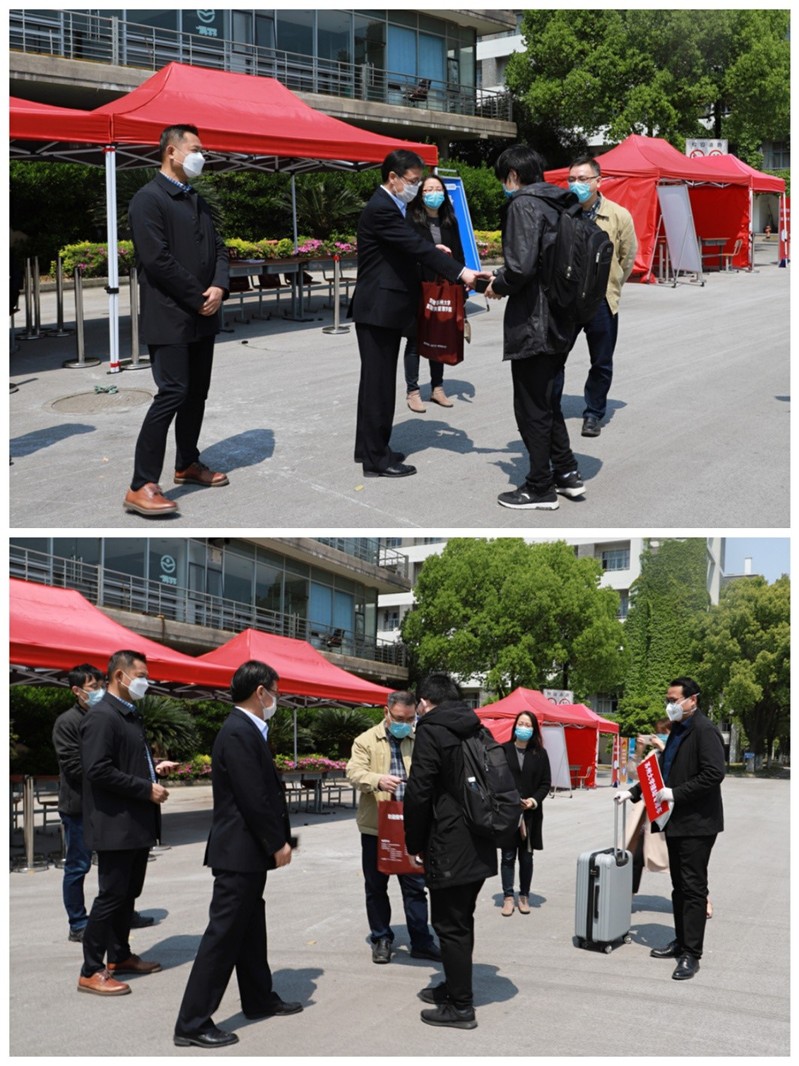 政治与公共管理学院院长陈进华,党委书记邢光晟,副院长吉文灿,党委副书记、副院长徐美华一行在校门口报道区域迎接学生返校,与学生交谈,深入了解学生返程详情、心理动态以及返校后的学习生活计划,传递如家般的温暖,鼓励学生坚定信心、克服困难、积极作为。此外学院针对学生返校后的需求制定了个性化的管理服务方案,针对尚未返校的同学,学院时刻牵挂同学们的学习考研就业等成长发展需求,将凝聚全院老师、校友、企业以及社会的智慧和力量,为即便远在千里之外的管院学子提供实实在在的指导和帮助,助力大家完成好学业、就业、毕业等工作。