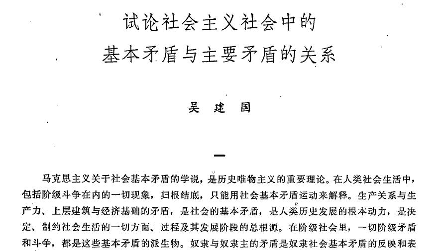 吴建国教授《试论社会主义社会中的基本矛盾与主要矛盾的关系》发表于《哲学研究》1978年06 期。