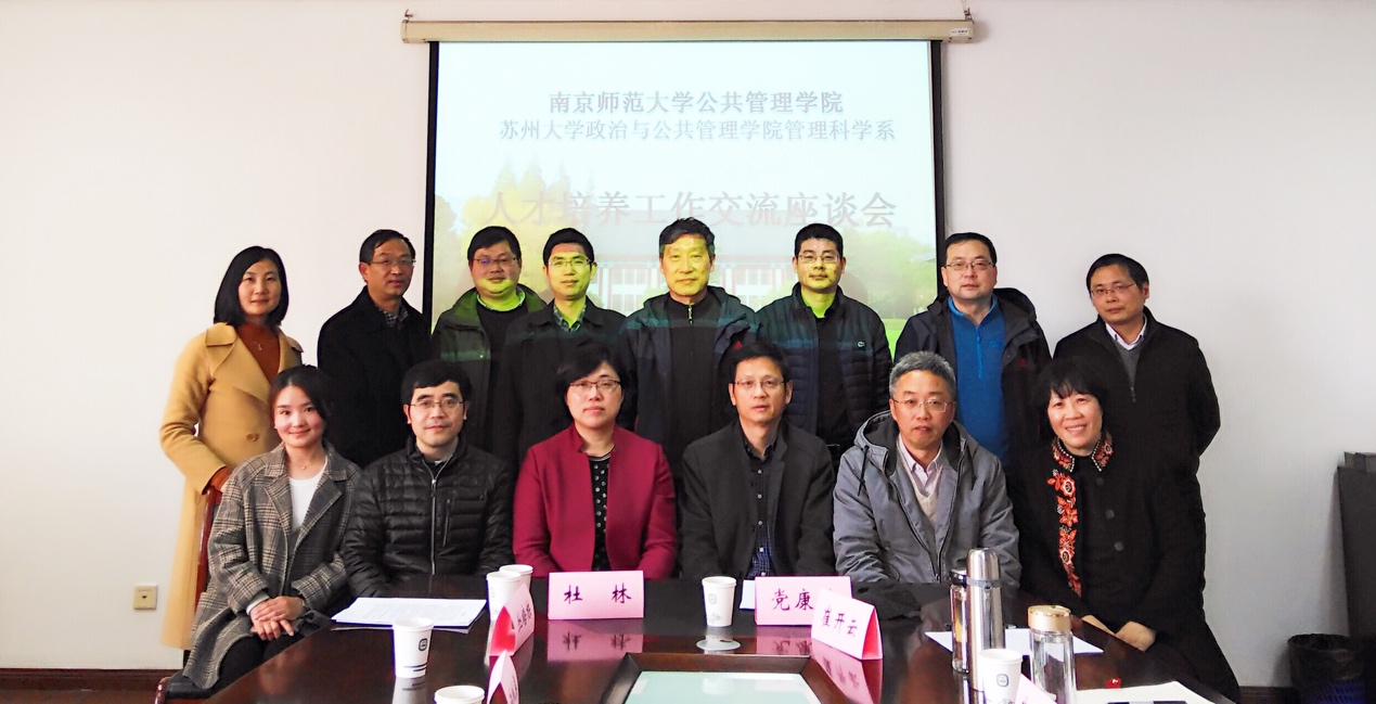 3月15日,在南京师范大学公共管理学院调研期间, 南京师范大学公共管理学院朱冬梅书记、赵晖院长、姚国宏副院长、韩秀景主任、崔开元副教授对张小洪教授一行表示热烈欢迎。朱冬梅书记扼要介绍了学院在科学研究和人才培养等方面概况,期望两院持续加强各种形式的合作交流。随即,公共管理学院院长赵晖教授从本科培养目标、培养方案、课程设置、实践教学、国际化合作办学等方面详细介绍了南师大强大文科背景下的行政管理本科专业富有特色教育教学和人才培养的主要做法和经验。