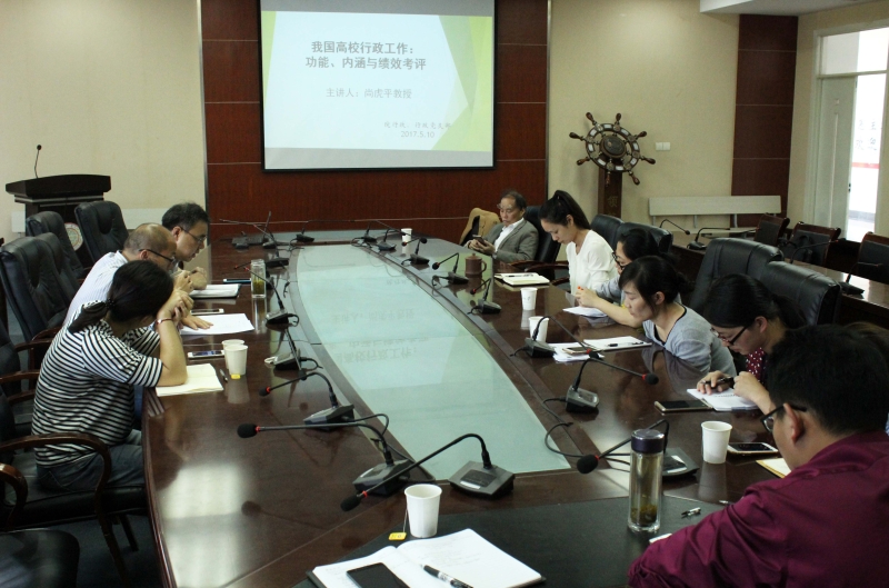 尚虎平教授在讲座中指出,高校行政作为高校三大功能之一,高校行政功能在保证组织运转方面发挥着重要作用但目前在我国还存在一些不足,迫切需要提升和理清行政功能和作用。尚教授结合绩效考评的相关专业知识分析了当前的行政人员职业安全问题,行政人员要在职责范围内改变服务态度,真正做到“门好进、脸好看、话好听、事好办”。同时也要加强科学研究和工作创新,不断提升自身素质和服务水平。