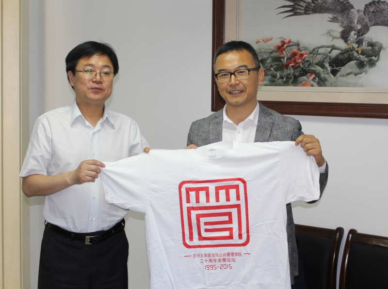 陈进华代表学院对周洪波校友的到访表示欢迎,并对他在事业上取得的成绩表示钦佩和祝贺。陈院长从学科建设、科学研究、人才培养、社会服务等方面介绍了学院近年来的发展变化和取得的成绩。陈院长还向周洪波校友赠送了学院纪念品并合影留念。
