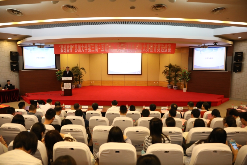 5月22日,由苏州大学教务部、学生工作部(处)、学生创新创业教育中心主办,我院承办的 “聚创星杯”苏州大学第三届“互联网+”大学生创新创业大赛决赛暨省赛选拔赛在炳麟图书馆学术报告厅落下帷幕。经过前期宣传动员,我校有548个项目报名参赛,经专家遴选,共33个项目进入校内决赛。