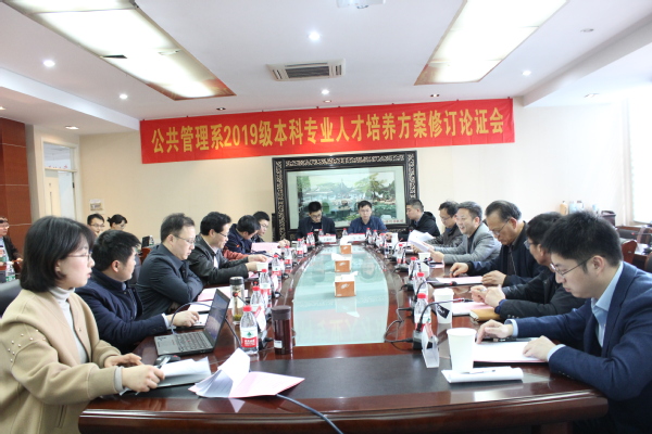 公共管理系主任沈承诚首先汇报2019级本科专业人才培养方案修订情况,包括行政管理、城市管理两大专业方案的修订过程、重点、创新之处等。随后,行政管理教研室主任胡小君、城市管理教研室主任李慧凤分别汇报了行政管理和城市管理专业人才培养方案修订的具体情况,介绍了培养目标、课程体系设置、方案调整前后对比及存在的问题等。